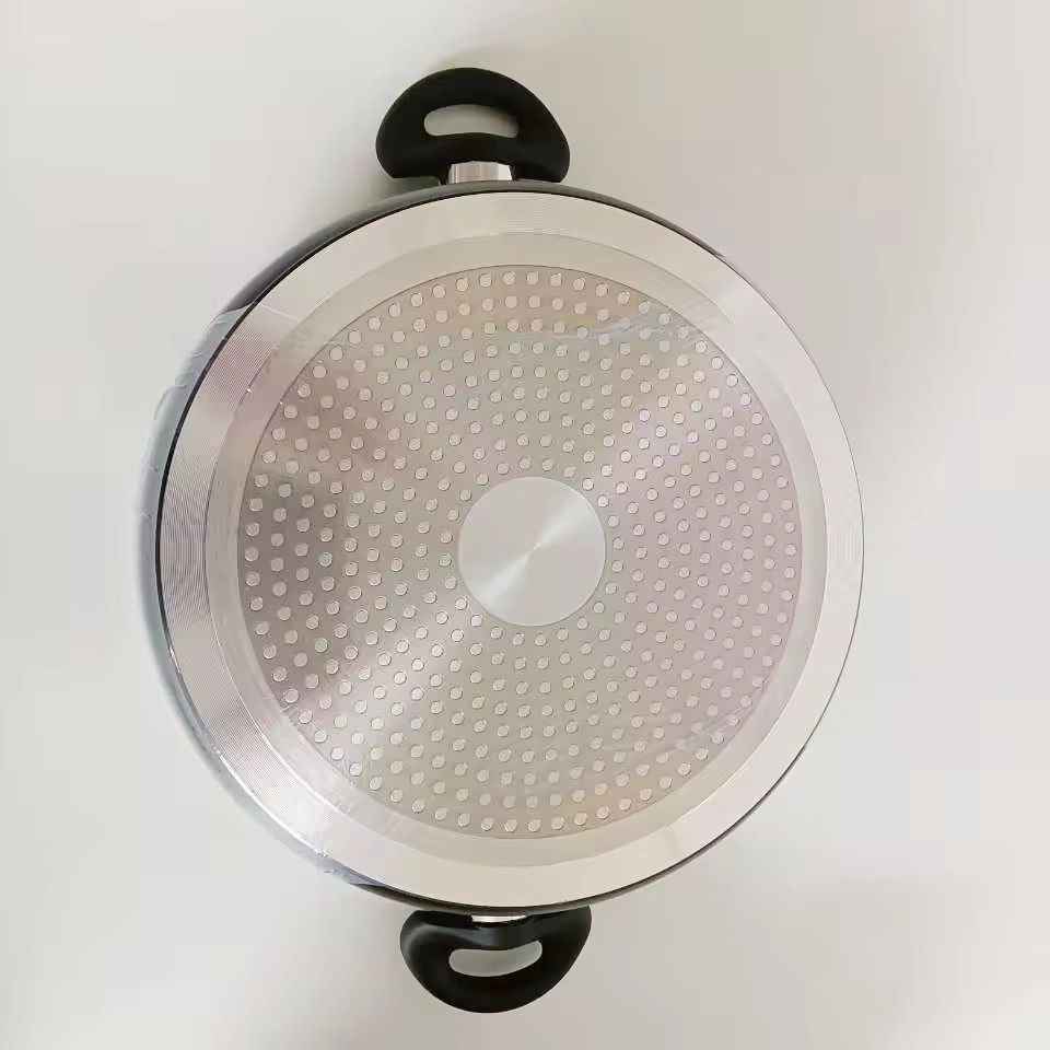 مقلاة غير لاصقة قدر خزفي أواني ومقالي من الألومنيوم طقم أواني طهي بمنفذ حساء مع غطاء زجاجي
