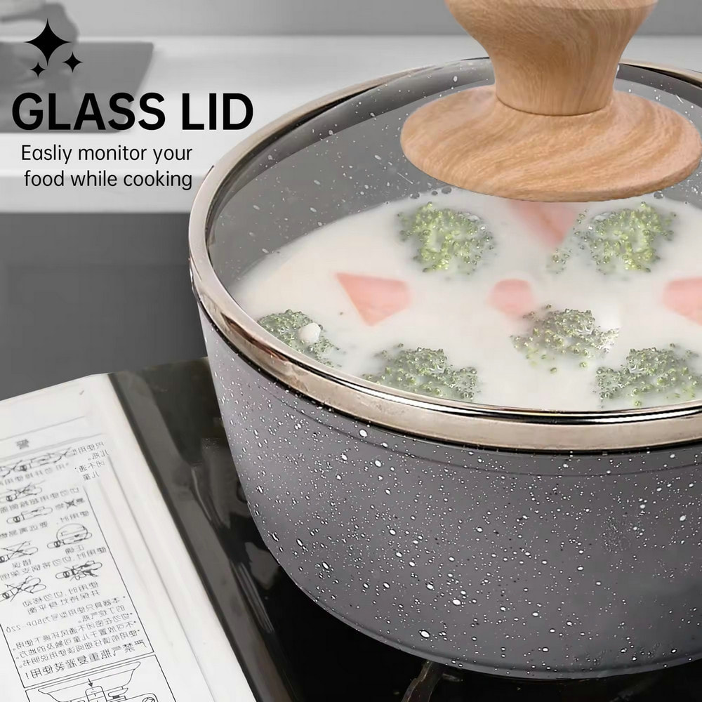 وعاء صلصة سيراميك ألومنيوم غير لاصق بأحجام متعددة مع مقبض
